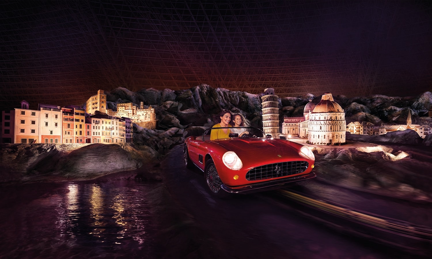 عيشوا إحساس أبطال سباقات الفورمولا 1 وانطلقوا على متن أسرع لعبة أفعوانية في العالم، أو جربوا قيادة نموذج مصغّر لسيارة فيراري فورمولا ون.