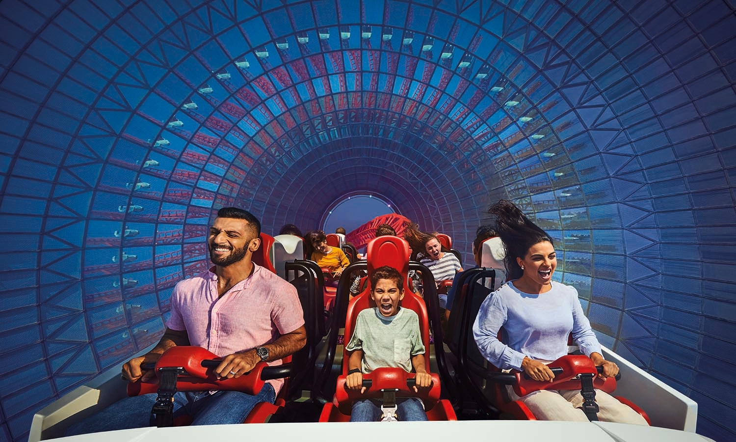 تشويق على أعلى المستويات: هذه المنطقة ليست لأصحاب القلوب الضعيفة. انطلقوا عبر السقف الأحمر المميز للمدينة وصولًا إلى أعلى نقطة على جزيرة ياس، أو طوّروا مهاراتكم خلال عدد من التجارب المستوحاة من حلبة سباقات السيارات.
